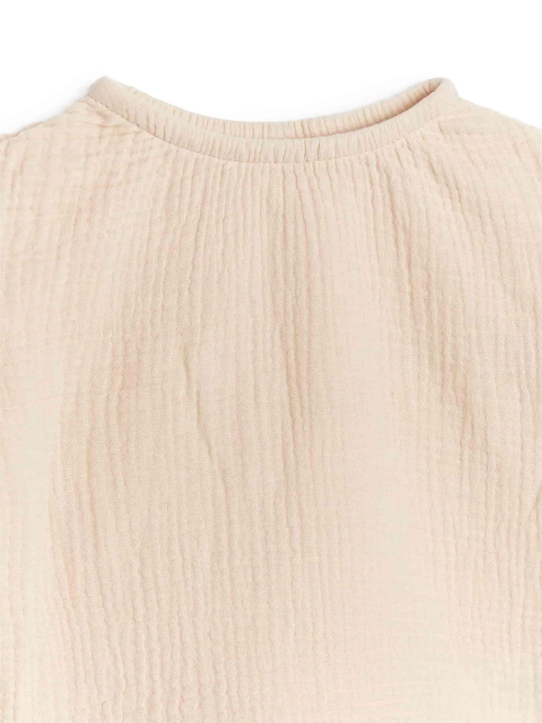 Camicia realizzata in morbida mussola di cotone dalla texture tattile. Elastici al collo e alle maniche per un effetto gonfio. Vestibilità regolare.