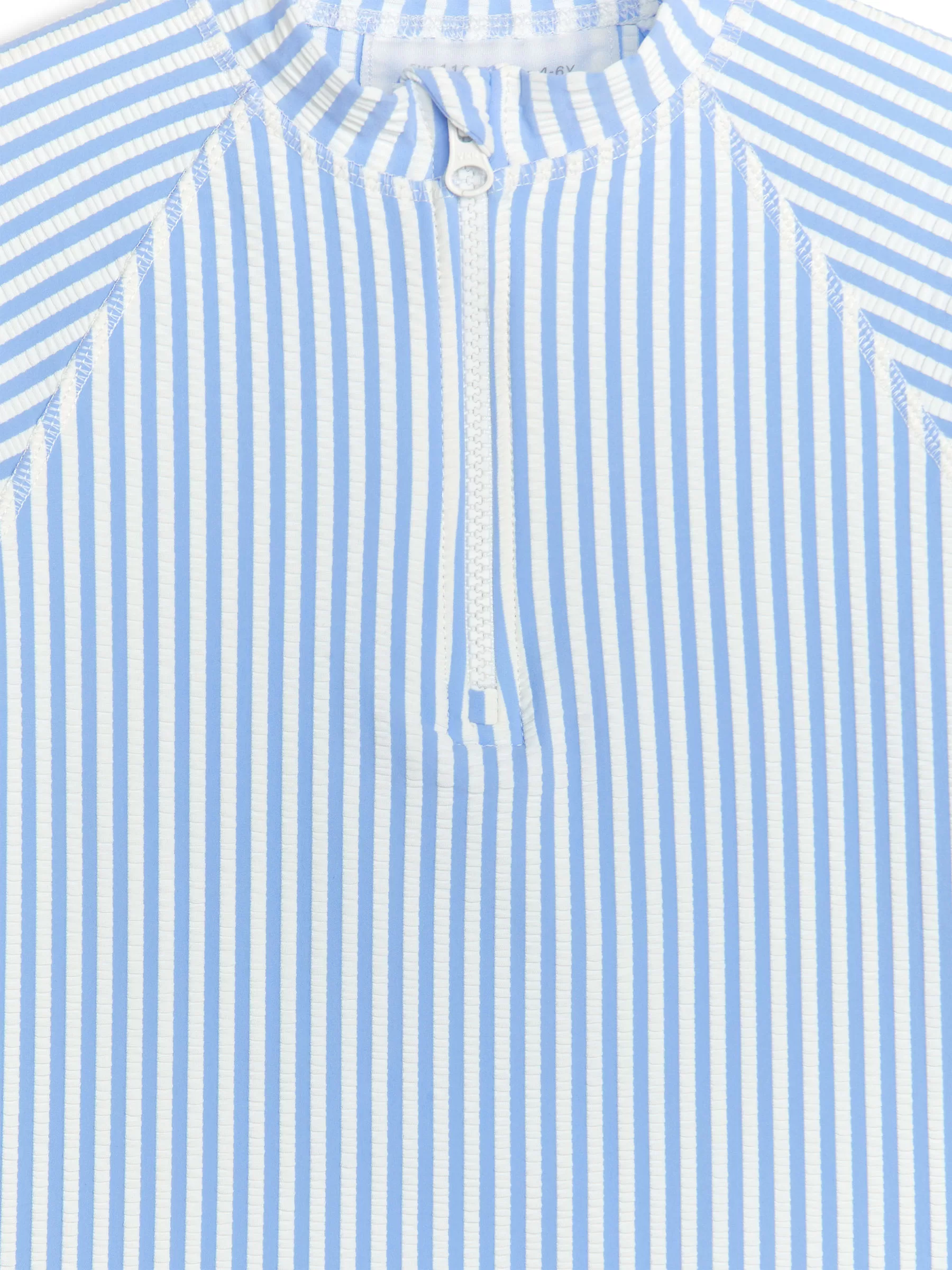 Top da bagno a maniche lunghe con tecnologia di protezione UV e cerniera frontale. Il materiale è tessuto seersucker ad asciugatura rapida.