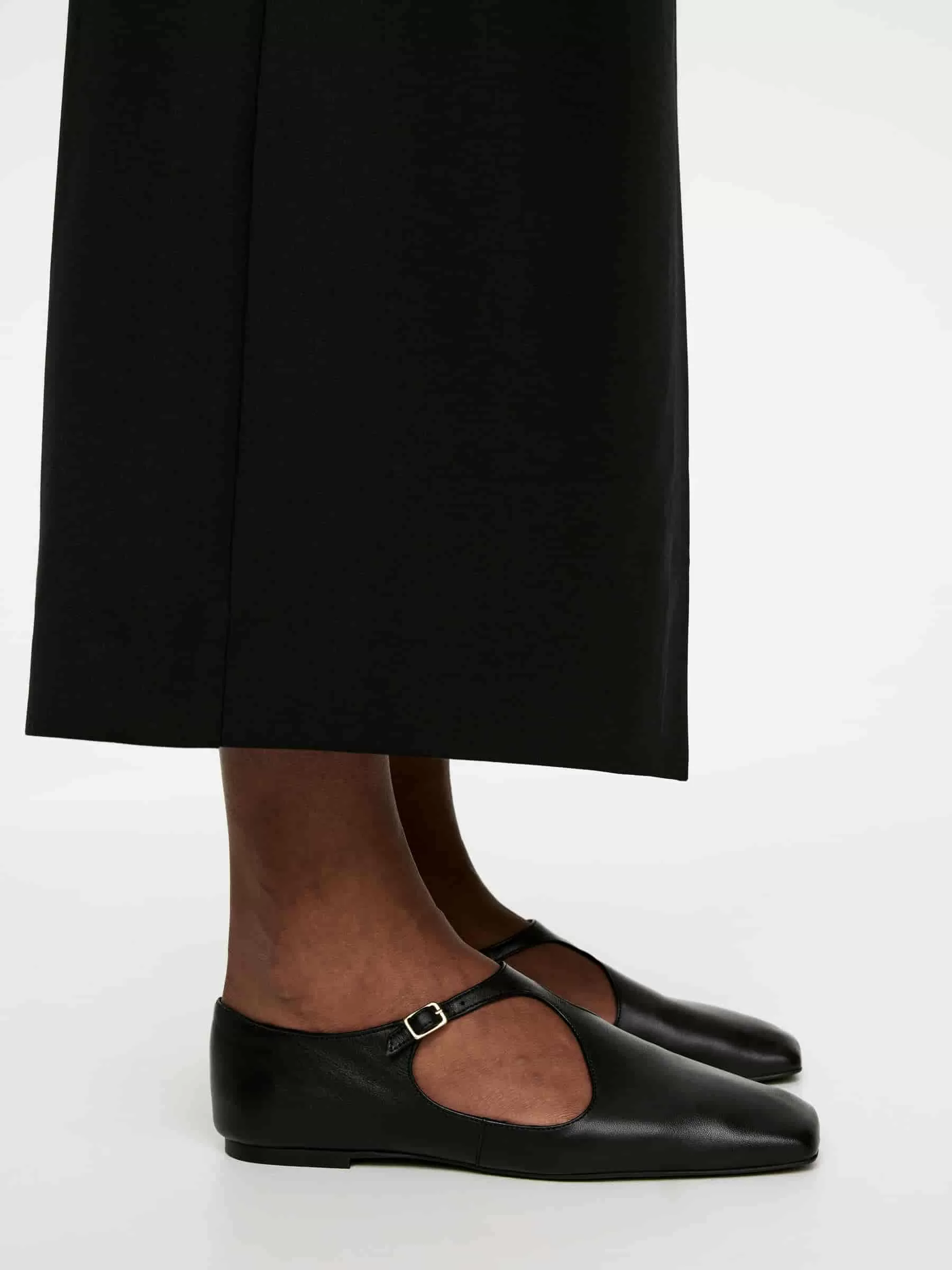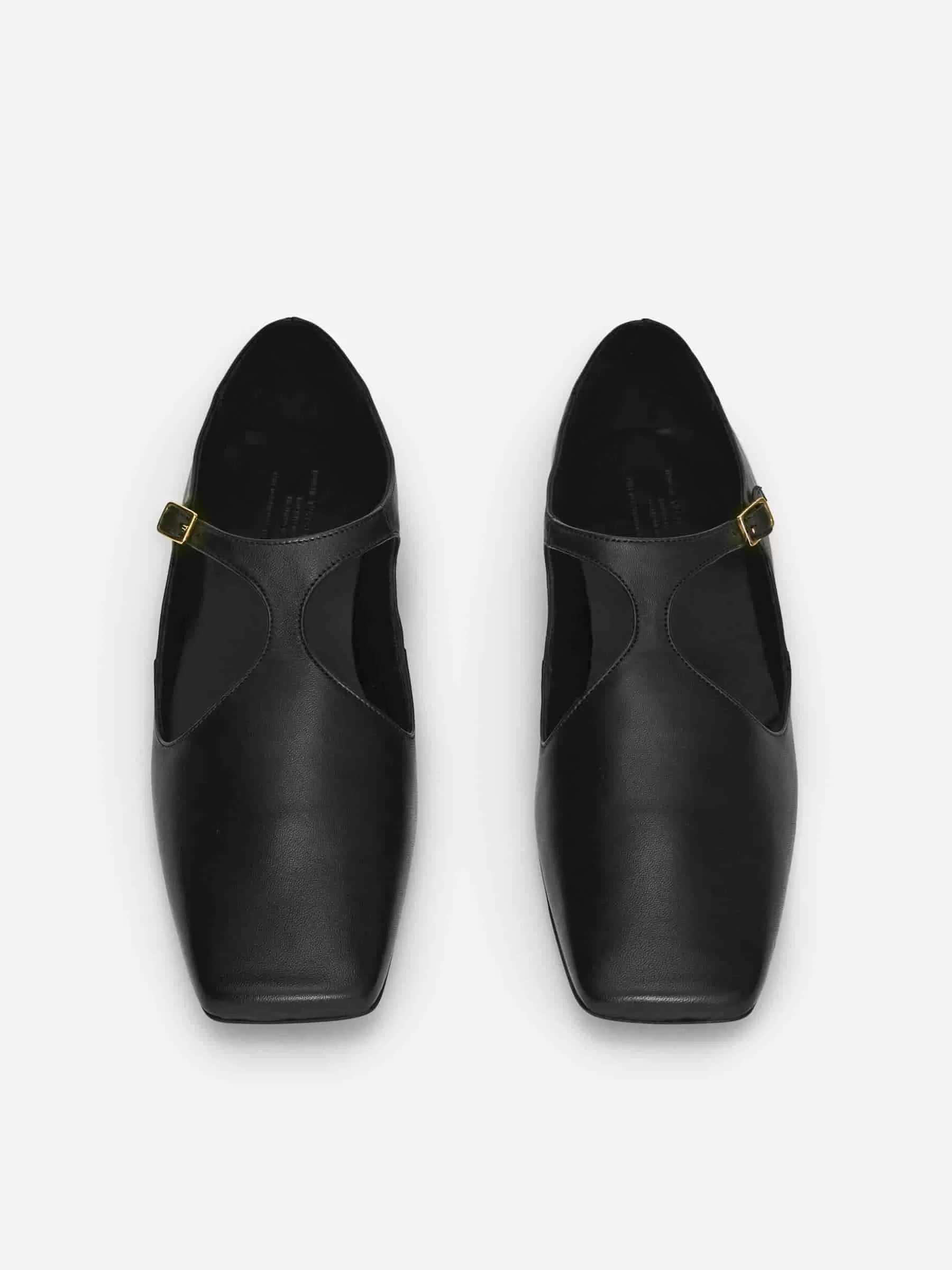 Ballerine in pelle con fibbia dorata e punta squadrata.