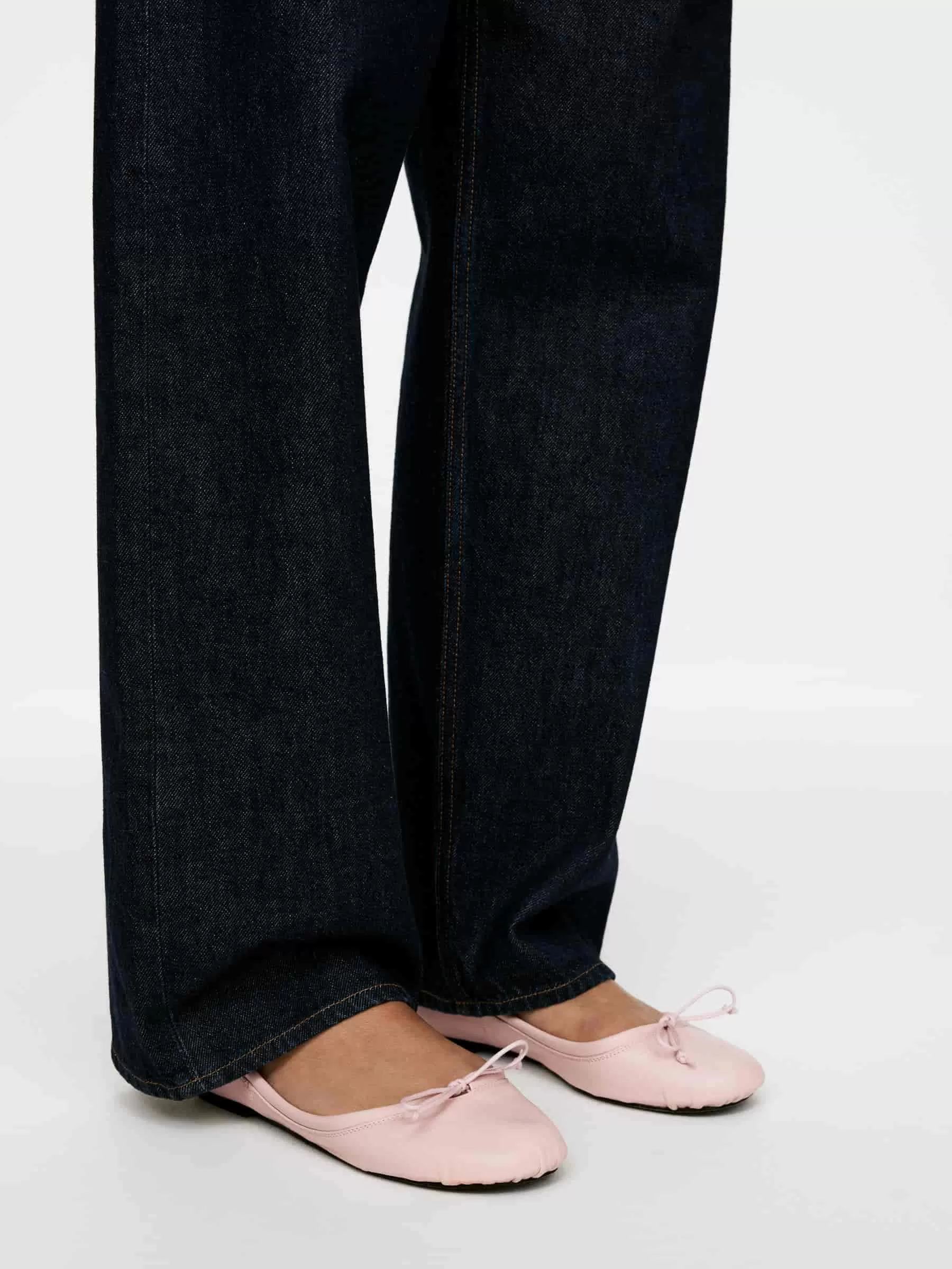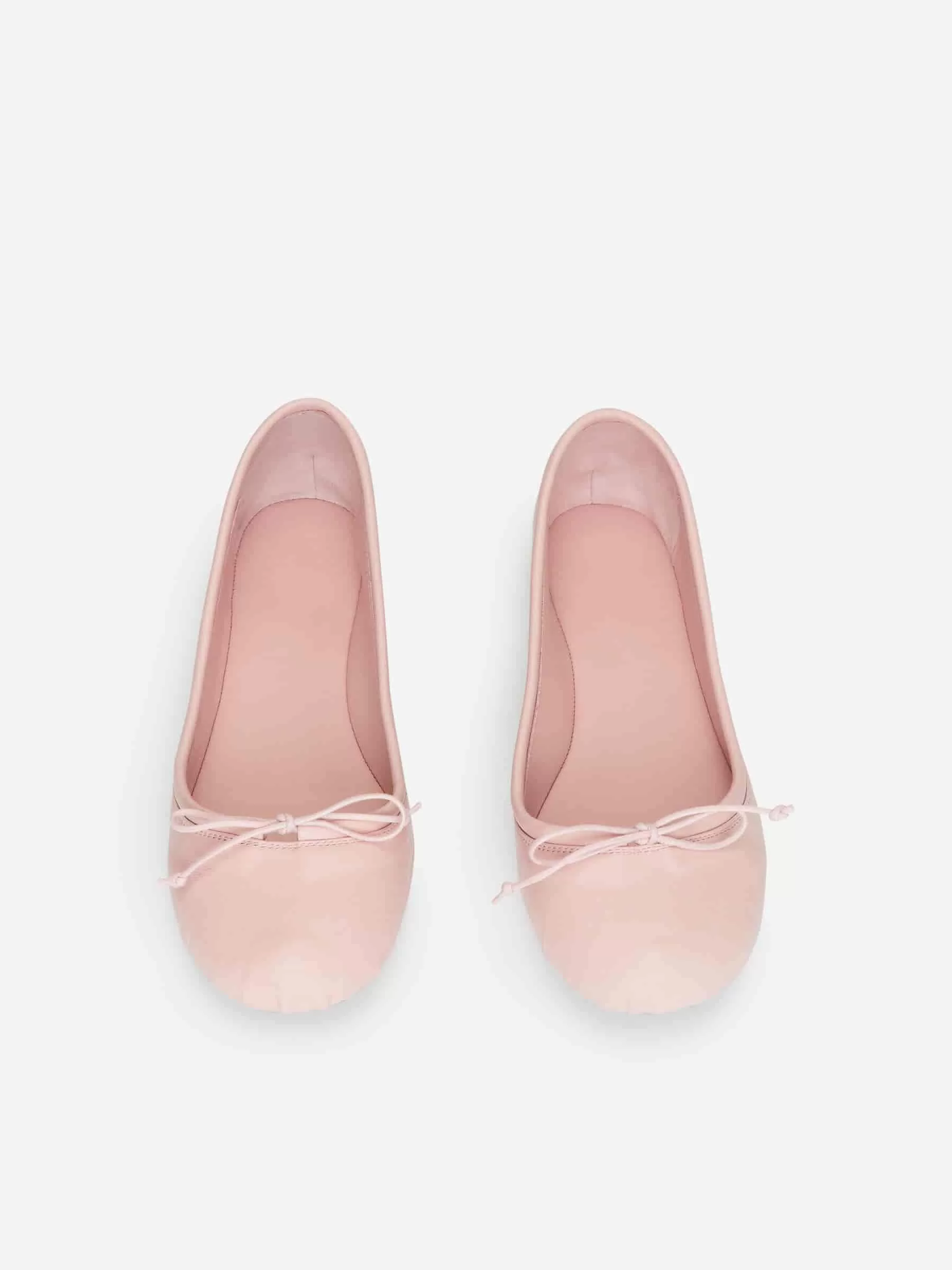 Ballerine realizzate in pelle senza cromo. Modello con lacci in raso e suola in gomma.