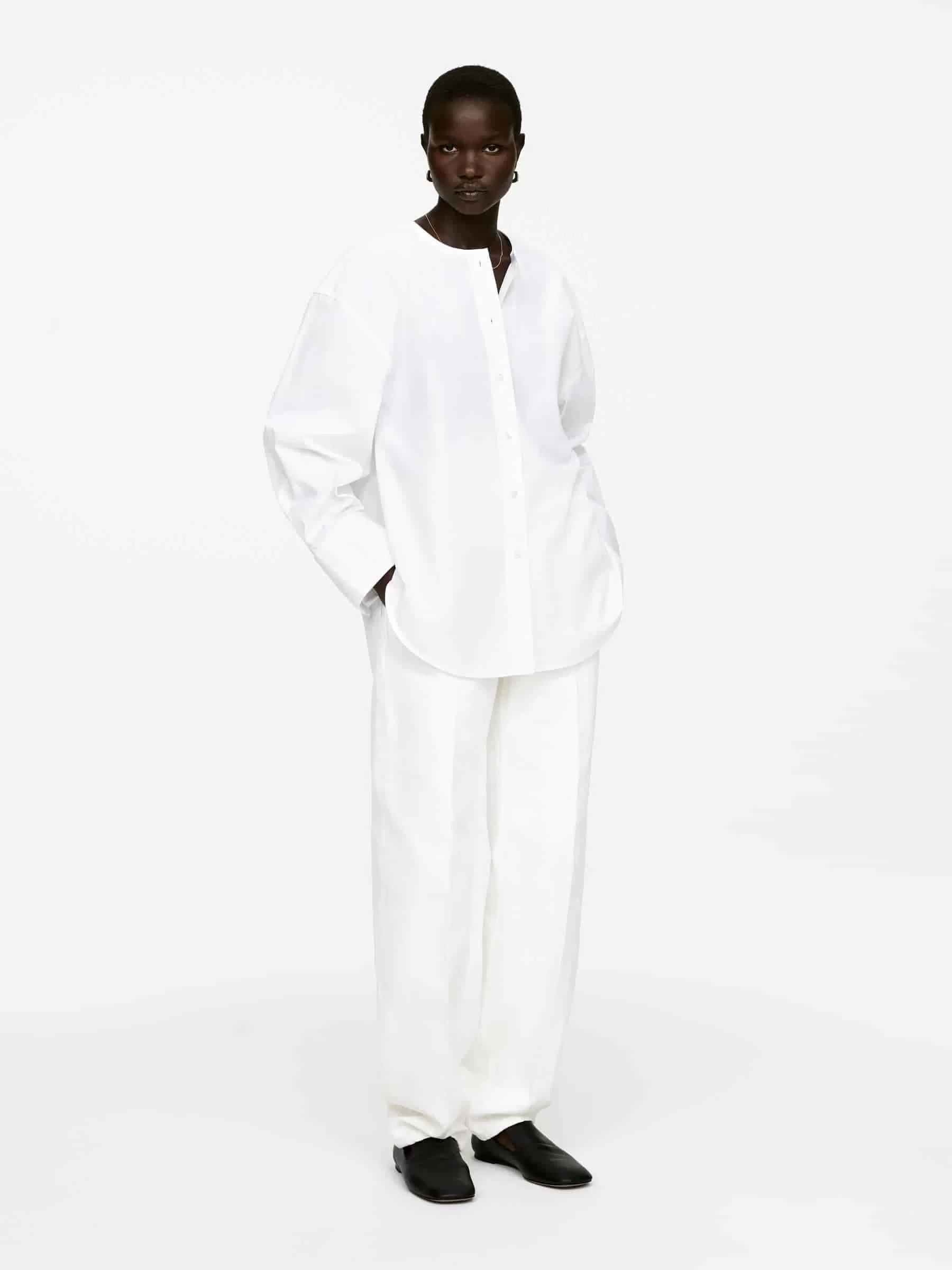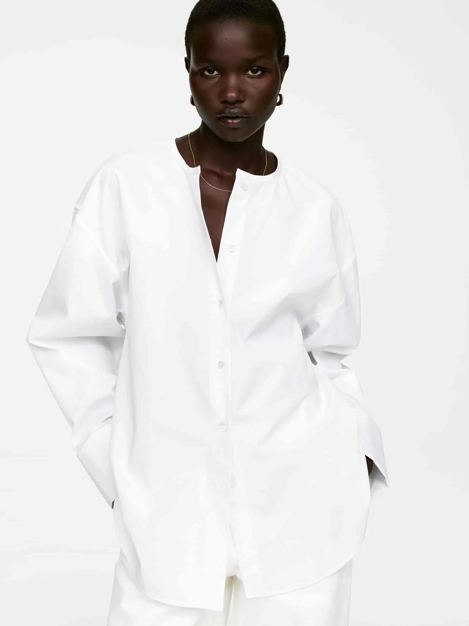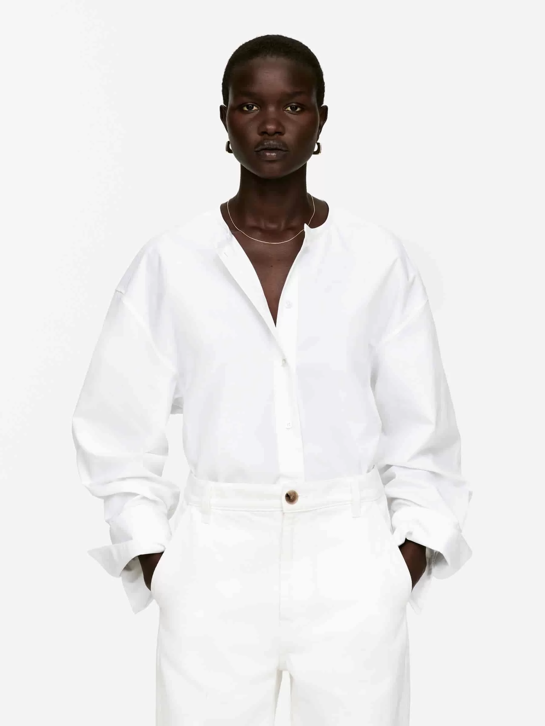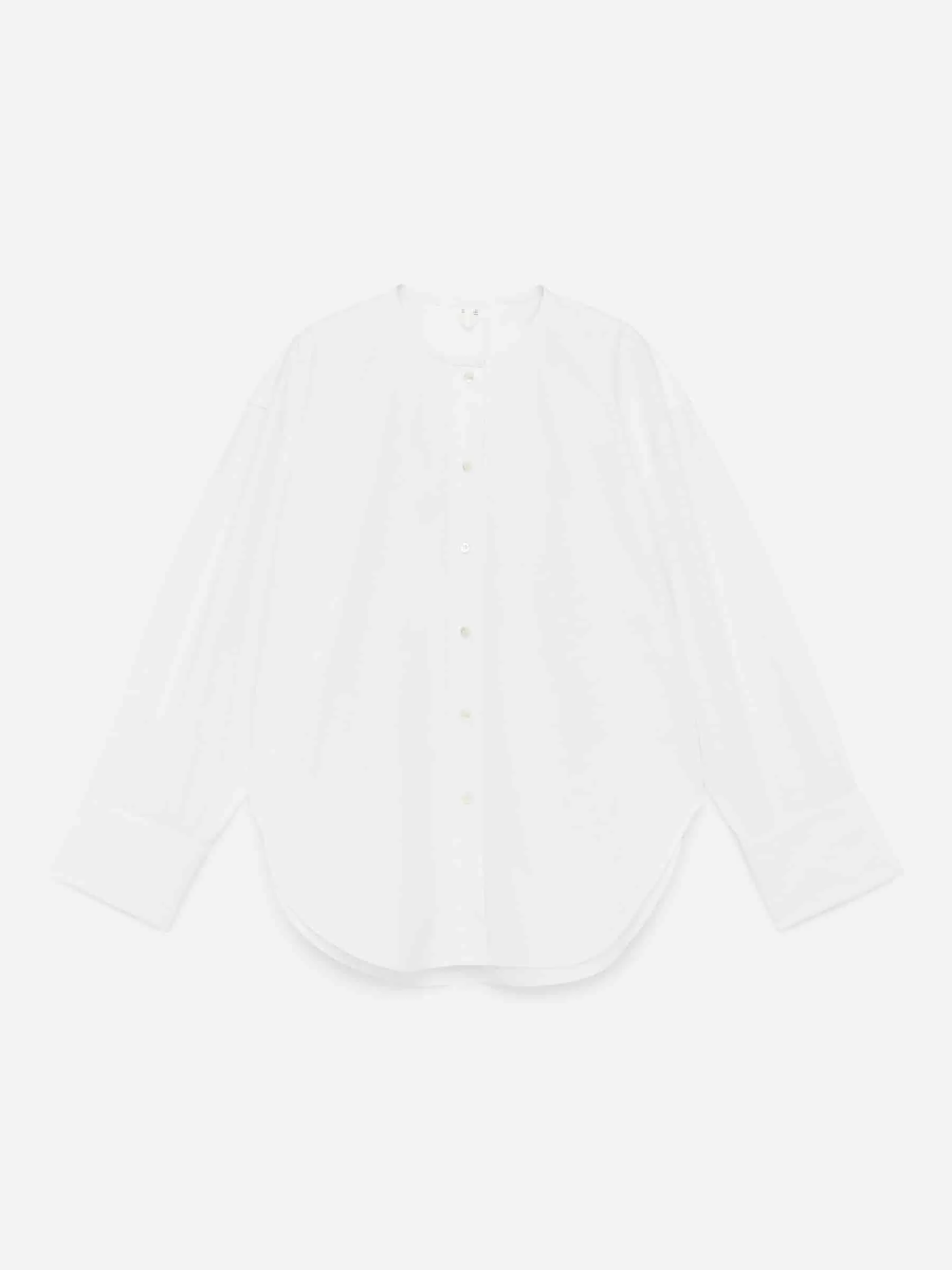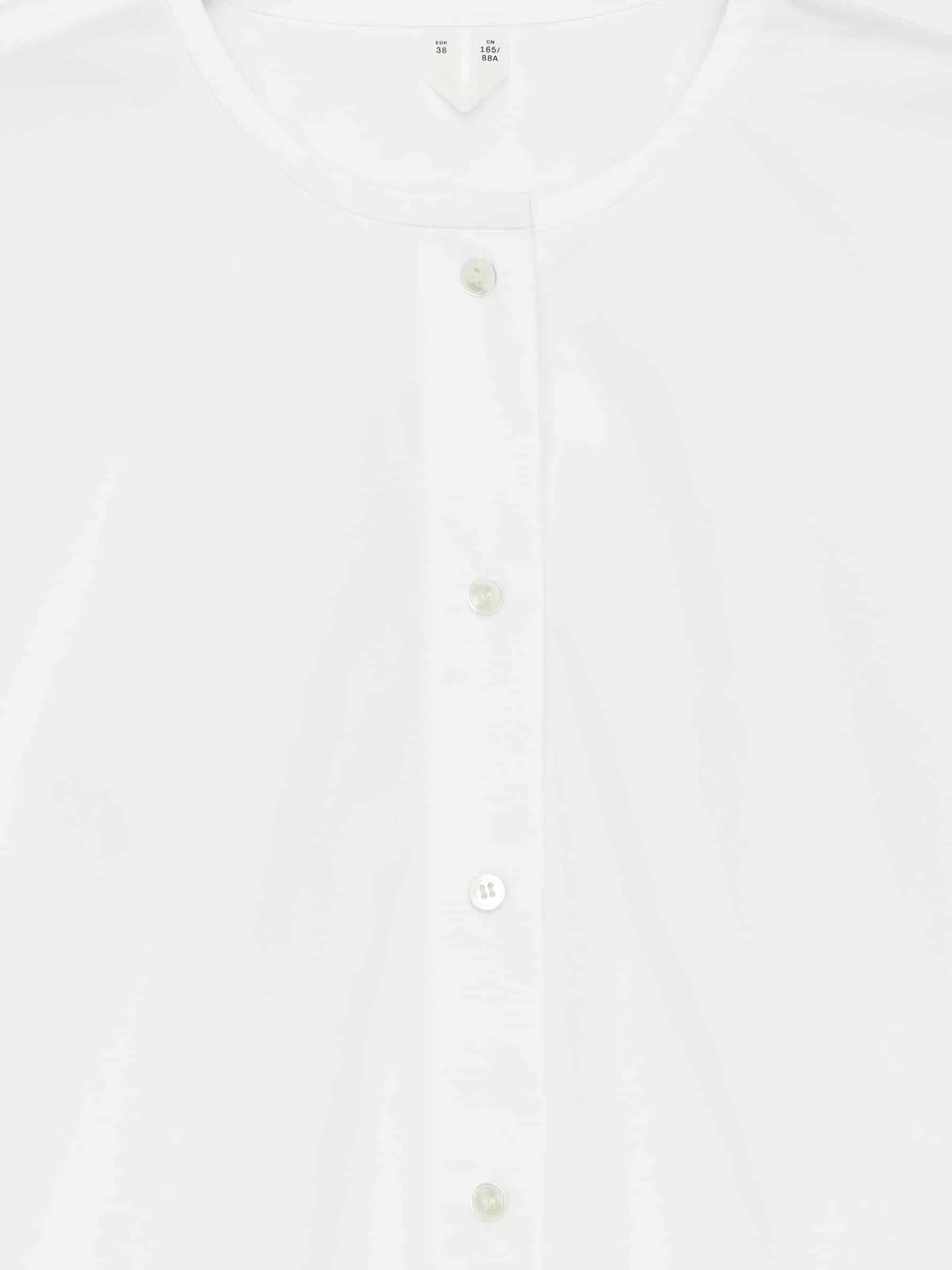 Camicetta senza colletto realizzata in cotone. Uno stile con bottoni, polsini ripiegati e vestibilità regolare.