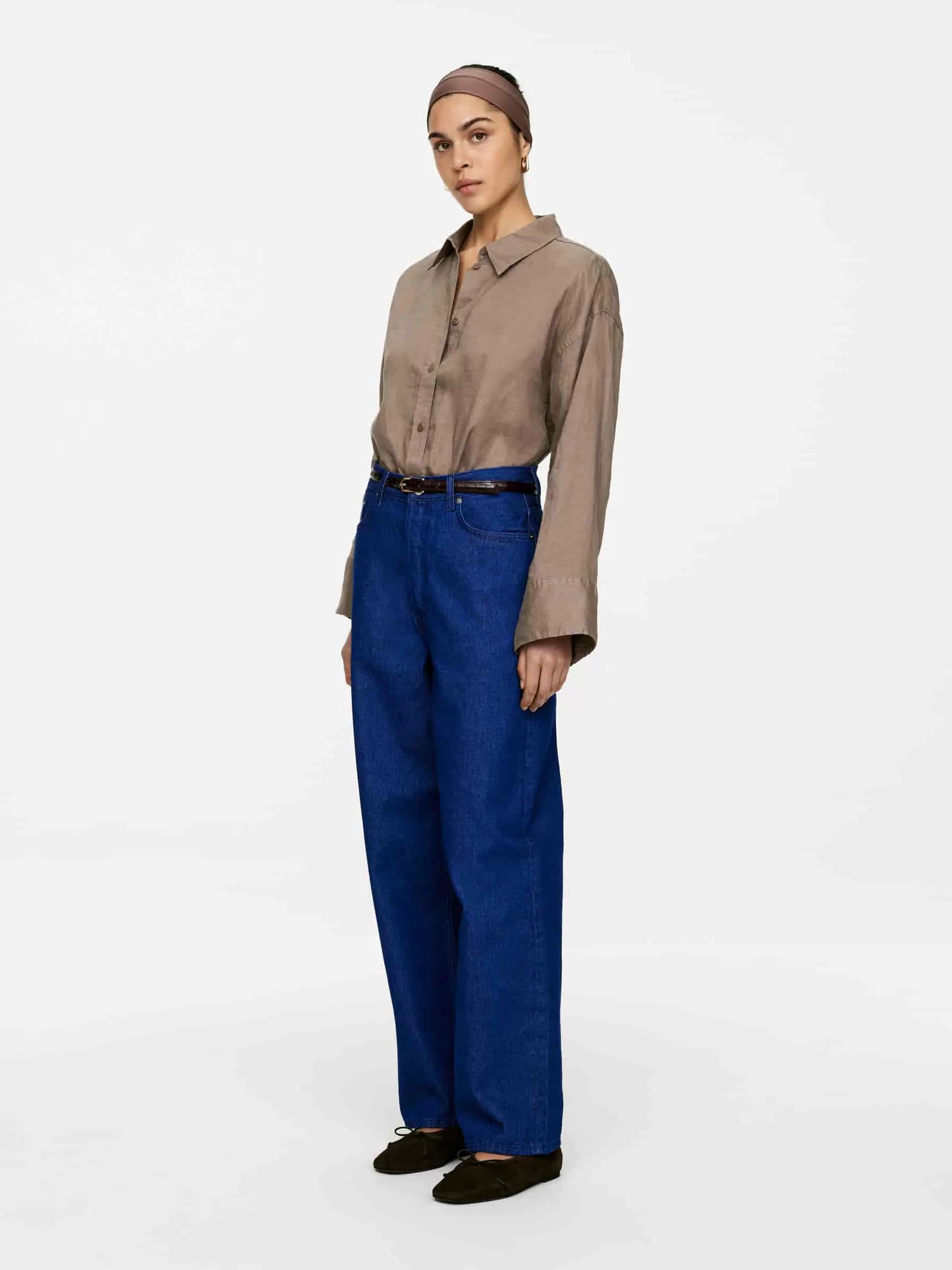 Camicia ampia realizzata in lino. Uno stile abbottonato con polsini larghi con bottoni e piega sullo sprone posteriore.
