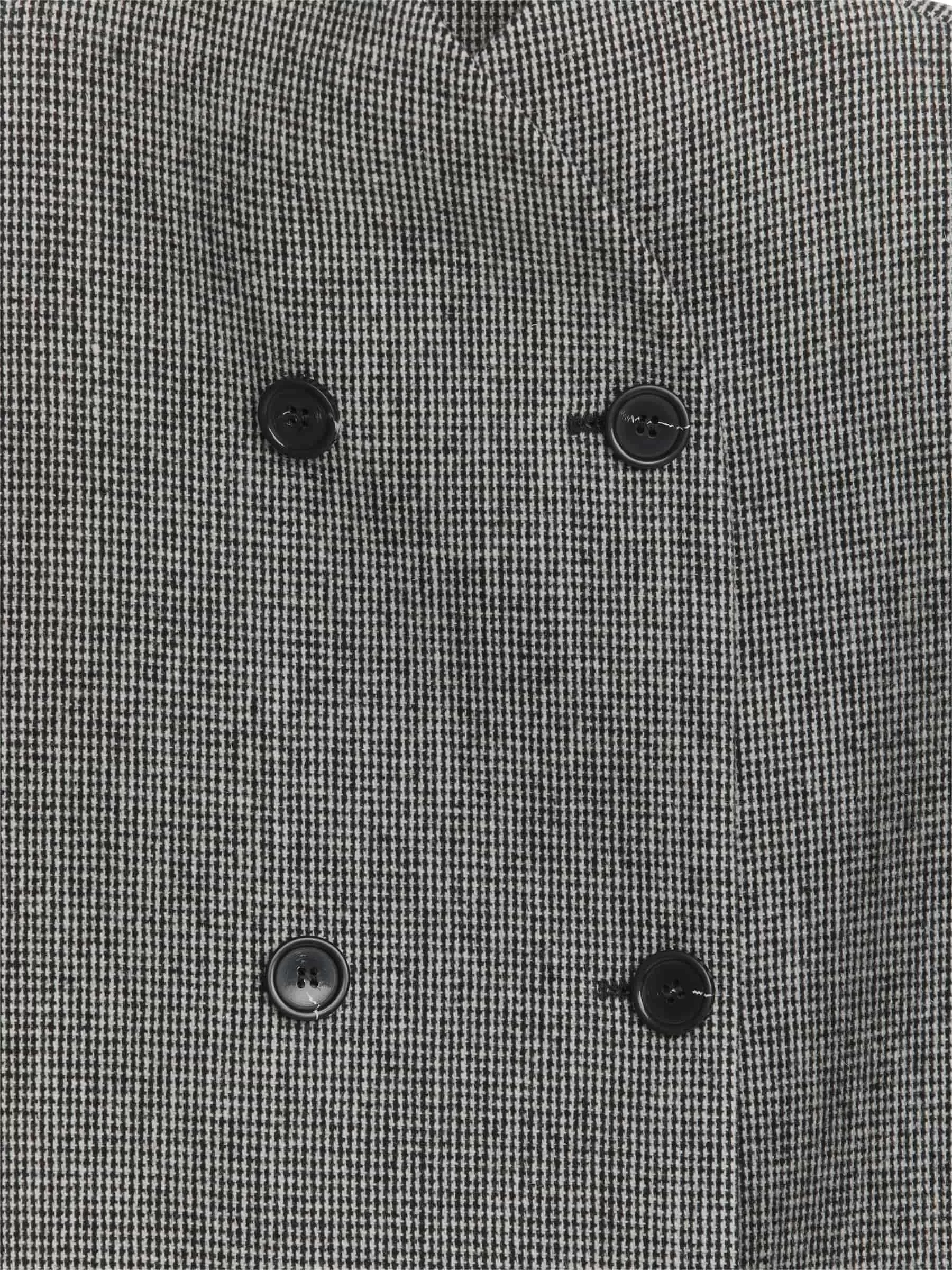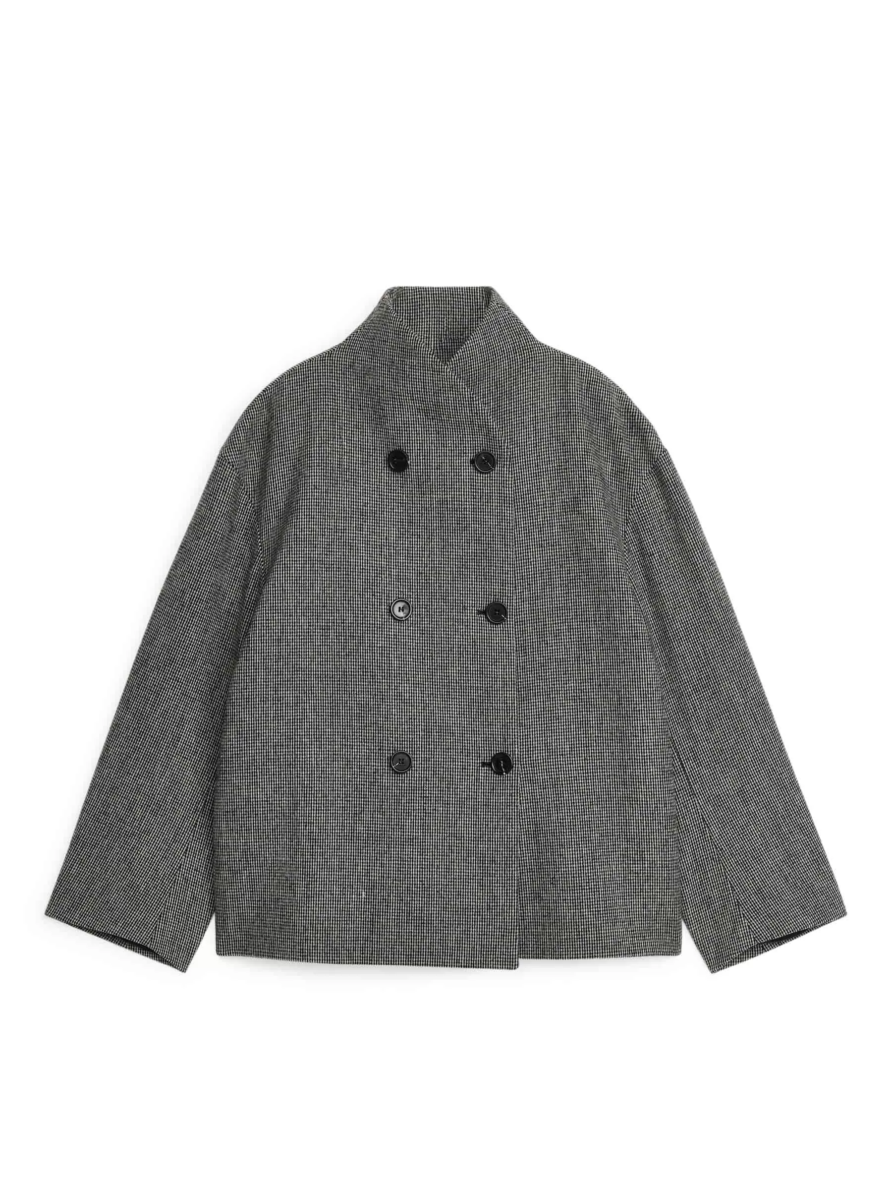 Giacca doppiopetto realizzata in misto lana. Taglio per una silhouette oversize leggermente arrotondata e dettagliata con collo a scialle. Tasche nascoste nelle cuciture laterali. Completamente foderato.